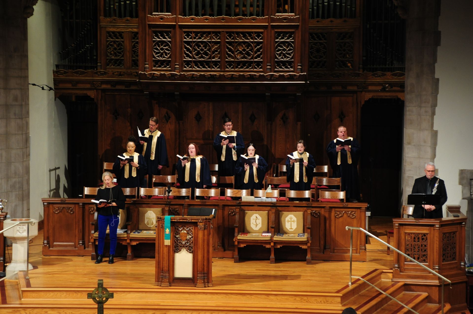 The Covenant Choir, composed of college and post-college age members, sings at the 11:00 service. To present a variety of choral repertoire, men of the choir and women of the choir occasionally sing independently in worship at both the 8:30 and 11:00 services. Major works, with chamber orchestra, are presented in the Advent and Lenten seasons. Rehearsals are on Thursday evenings, 7:15-8:45. New members are welcome! Contact Director of Music Gary L. Anderson for information regarding membership by clicking the button below.